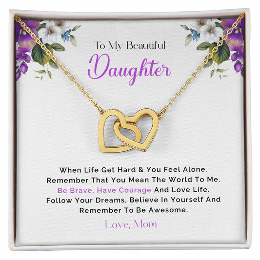 To My Beautiful Daughter | Be Brave, Have Courage & Love Life - Interlocking Hearts necklace